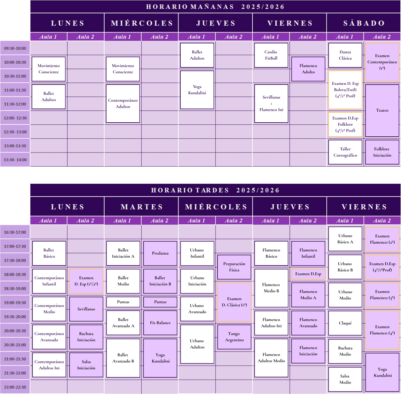 * Los horarios pueden sufrir modificaciones en función de las necesidades y correcto funcionamiento de la escuela.